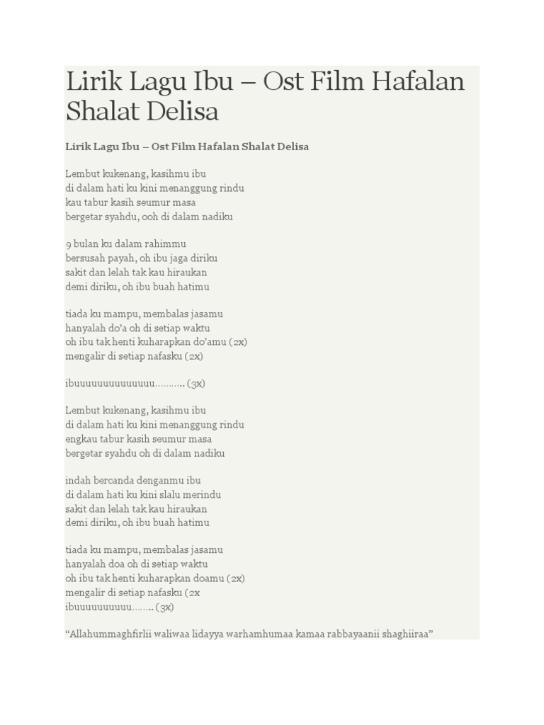 Air wudhu selalu membasahimu Ayat suci selalu dikumandangkan Suara lembut penuh keluh dan kesah Berdoa untuk putra putrinya. Up to 24 cash back LIRIK LAGU OH IBU FULL. Kaulah segalanya di dalam hidupku aku ada karena ibu lahir di dunia ini.